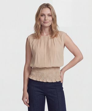 - Cuello redondo con detalle de recogido