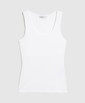 - Cuello redondo amplio con acabado sencillo